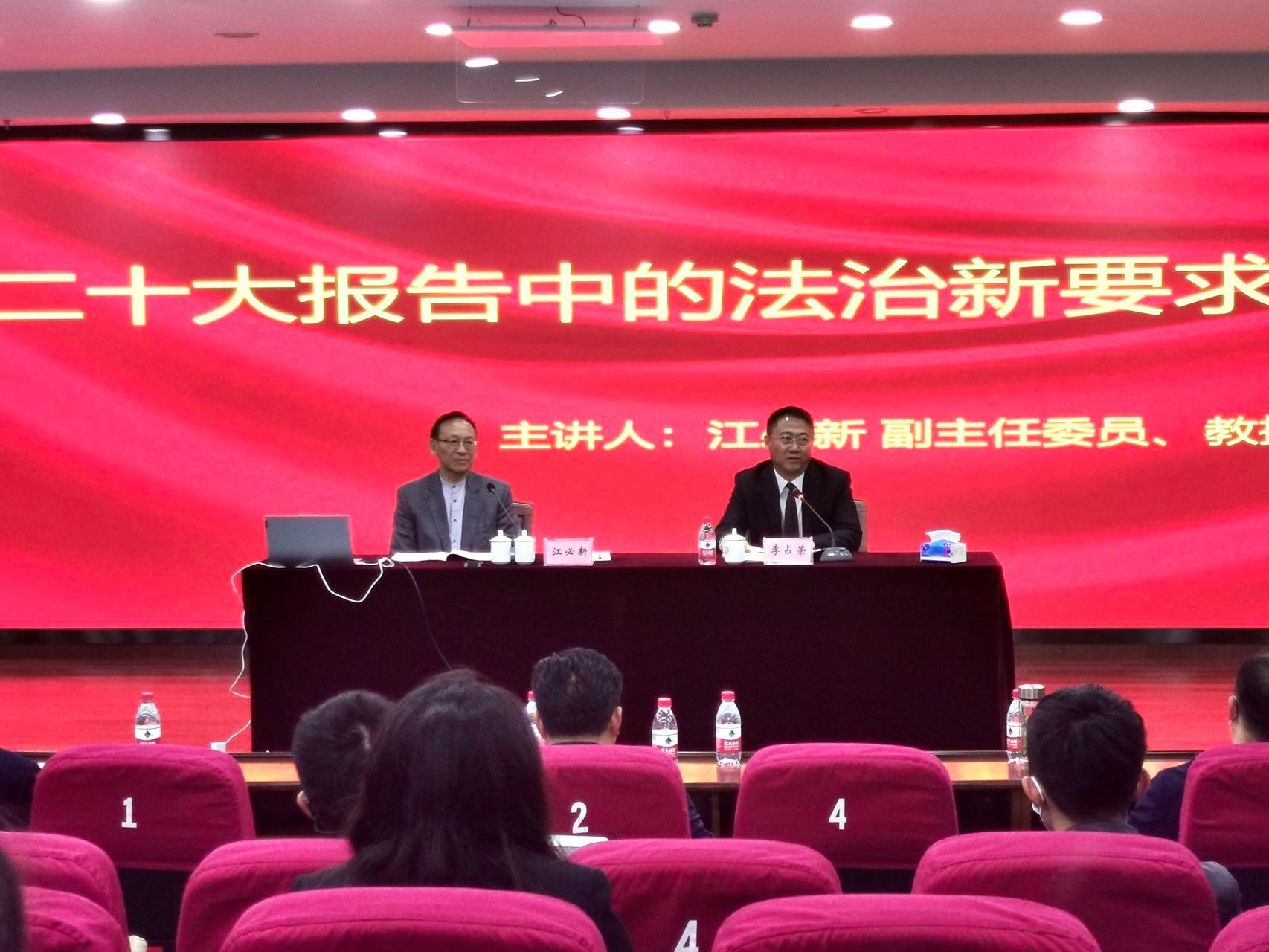 11月7日,全国人大宪法和法律委员会副主任委员江必新教授应邀做客“鹅湖讲台”,为我校师生带来一场以“二十大报告中的法治新要求”为主题的学术讲座。本次讲座是雷速体育官网 建院20周年学术系列讲座第15讲,由浙江财经大学副校长李占荣教授主持。讲座在学术中心第四报告厅举行,我校师生聆听了讲座。讲座中,江必新教授从二十大报告中法治的要求出发,多角度阐述了二十大报告中法治的重要意义。江教授以“坚持全面依法治国、推进法治...