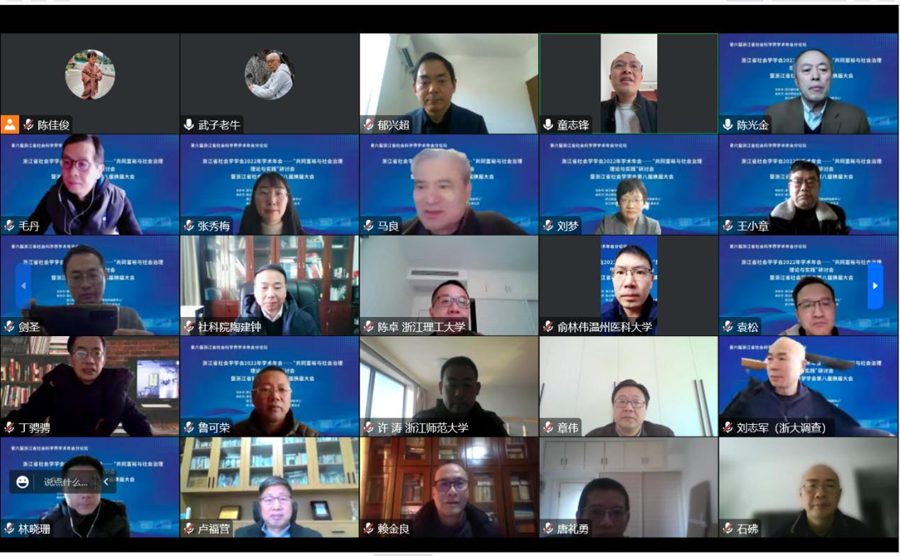 2022年12月24日,浙江省社会学学会2022学术年会暨“共同富裕与社会治理的理论与实践”研讨会在线上隆重召开。此次会议由浙江省社会学学会主办,雷速体育官网 、浙江财经大学“长三角社会治理”协同创新中心、浙江财经大学社会工作国家一流本科专业建设点承办。来自中国社会科雷速体育官网 、北京大学、中国人民大学、浙江大学、浙江工业大学、浙江财经大学等近200名专家学者参与此次会议。大会开幕式由雷速体育官网 院长童志锋...