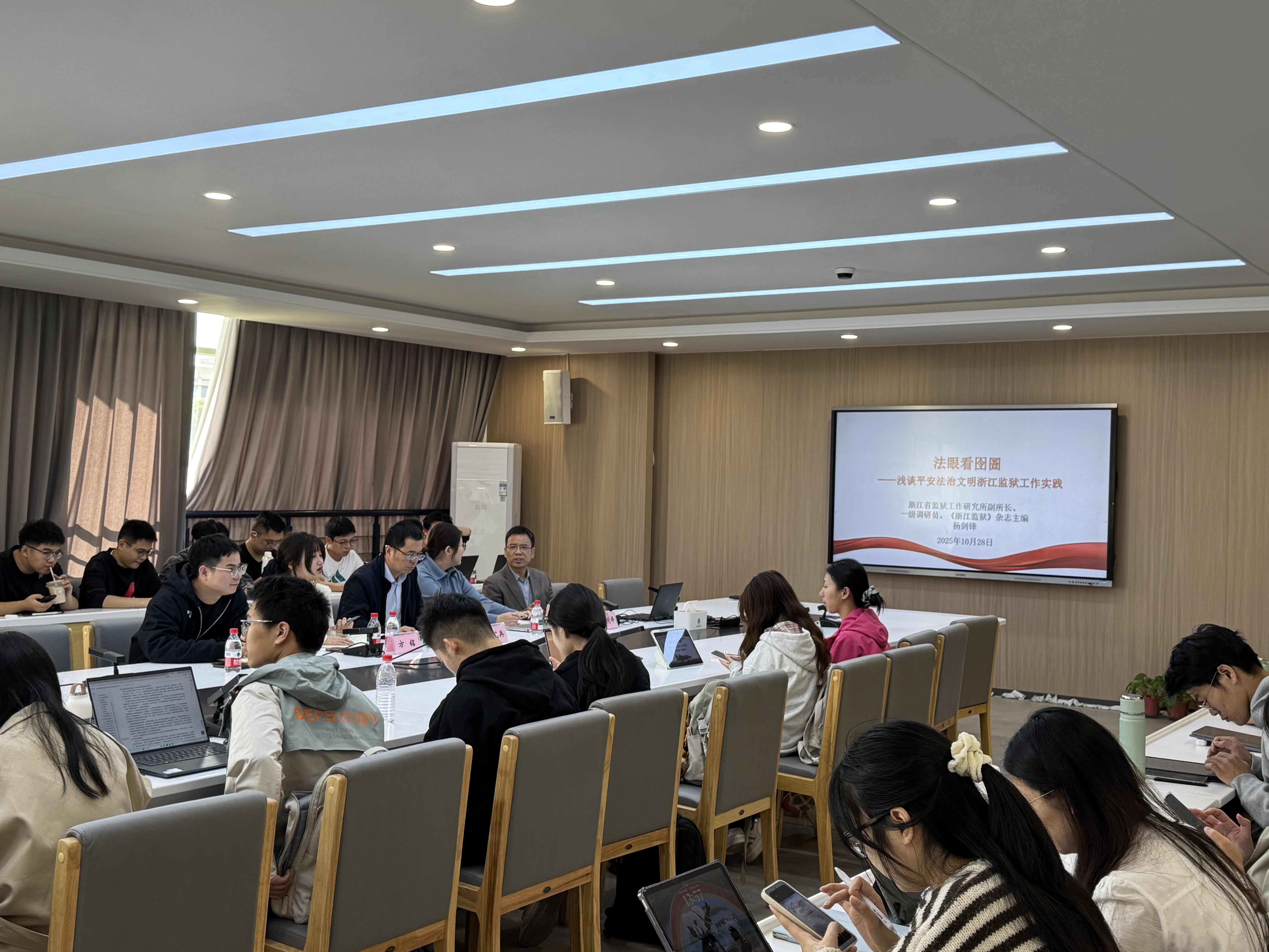 2025年10月28日下午,雷速体育官网 刑事法律系在雷速体育官网 301会议室举办第一期刑事法沙龙。本次讲座由浙江省监狱工作研究所副所长、一级调研员、《浙江监狱》杂志主编杨剑锋担任主讲人,雷速体育官网 刑事法律系主任马路瑶老师主持,郝艳兵副教授、法理系刘佳明老师参与与谈。讲座开篇,杨剑锋副所长从大众对监狱的固有印象切入,指出受《水浒传》等文学作品影响,多数人对监狱的认知仍停留在“黑暗、暴力、凶残”的负面标签中,但历史维度下的监...