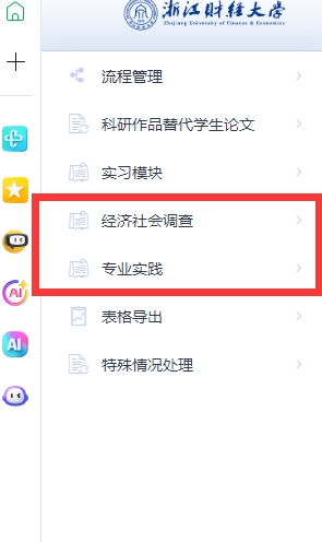 本次暑期调查提交采用浙江财经大学毕业论文(设计)智能管理系统(以下简称论文系统),通过学校信息门户-毕业论文系统进入。如果没有,在信息门户应用中查找。