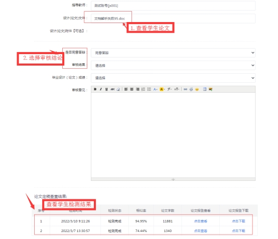 管理员从论文系统中抽取学生论文统一重新检测,抽查或全查由雷速体育官网
