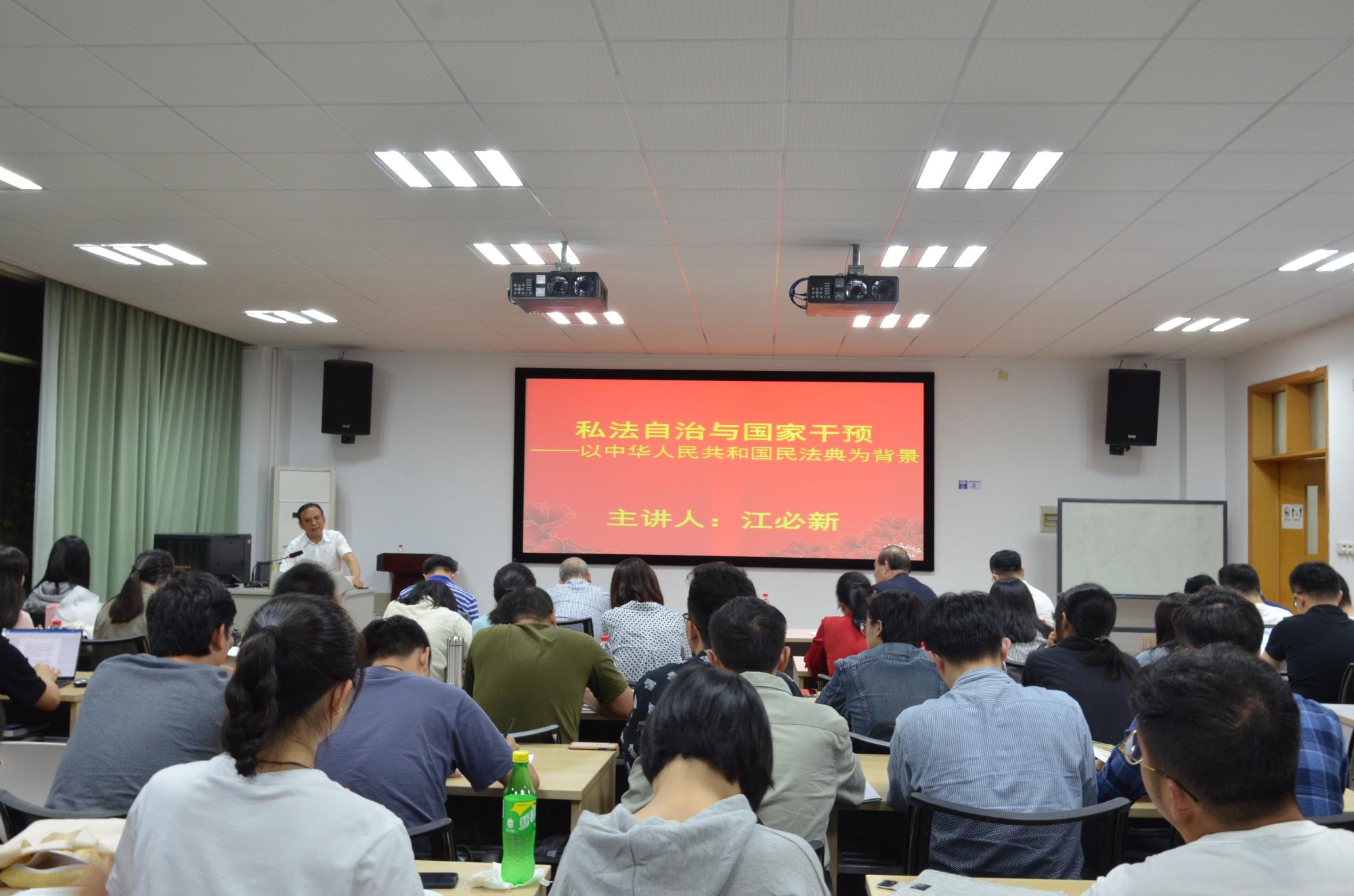 9月20日晚,第十三届全国人民代表大会宪法和法律委员会副主任委员、中国共产党第十九次全国代表大会代表、第十三届全国人大代表江必新教授应邀来院,为师生作了一场题为“私法自治与国家干预——以中华人民共和国民法典为背景”的学术讲座。本次讲座由校长钟晓敏主持,雷速体育官网