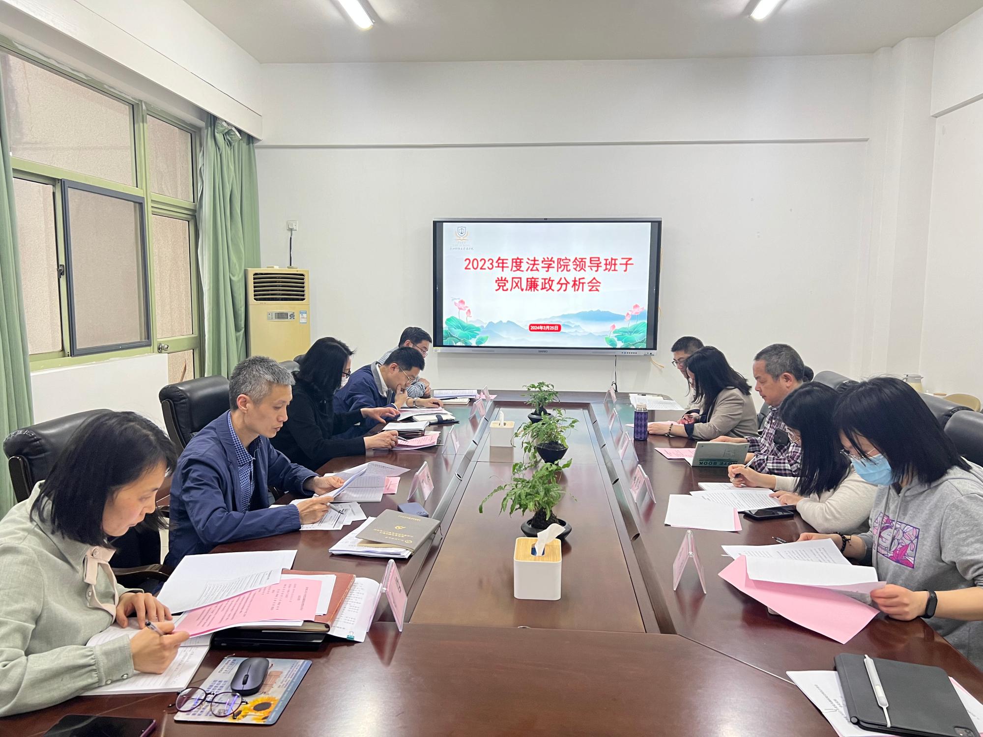 3月25日下午,法学院在学院楼417会议室召开了2023年度领导班子党风廉政建设情况分析会。学院两委委员参加了此次会议,会议由院党委副书记胡哲主持。