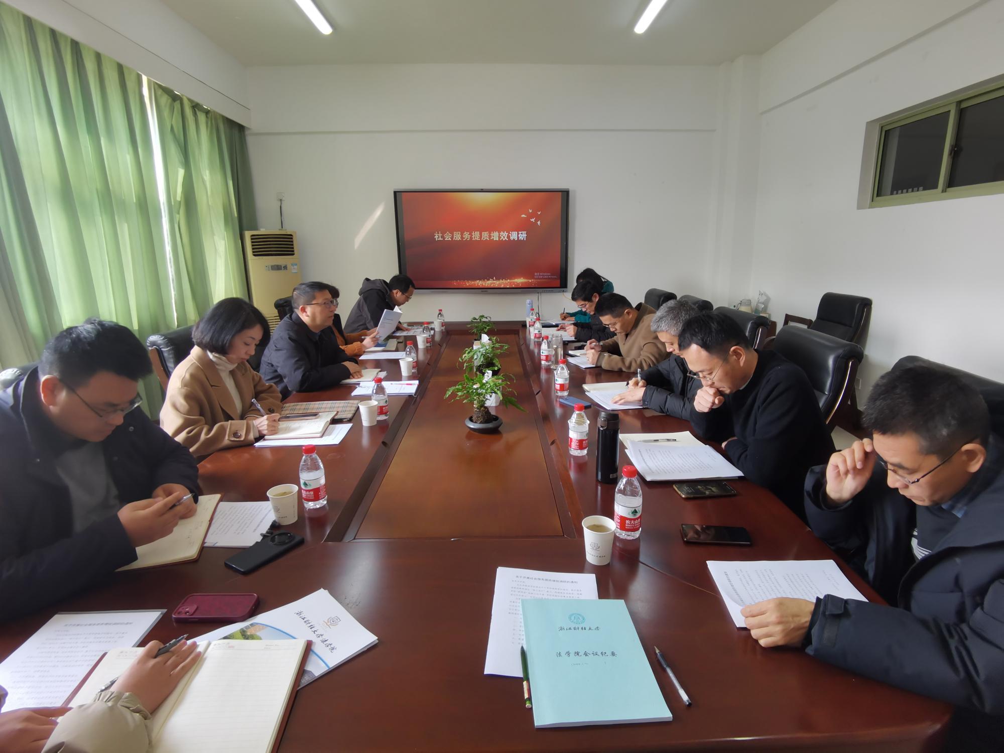 学院院长唐勇、院党委书记丁洪介绍了我院社会服务工作情况,剖析了阻碍学院开展社会服务工作的体制机制障碍,交流了我院社会服务工作下一步工作思路和目标计划。杨剑勇表示学校将做好社会服务政策支持,积极搭建校地、校政和校企合作平台,改善社会培训环境,希望学院进一步挖掘社会服务潜力,明确社会服务工作职责分工,根据学校“新财经”战略行动方案,实施社会服务提质工程,构建新生态体系。