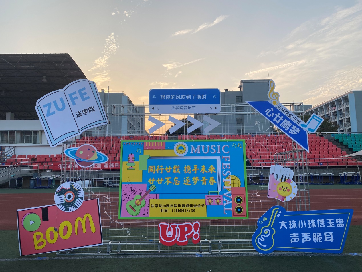 2022年11月5日18点30分,浙江财经大学法学院建院20周年庆典暨2022级迎新音乐节——“心廿廌梦”在学校西体育场盛大开幕。出席本次音乐节的嘉宾有:浙江财经大学副校长李占荣老师、浙江财经大学法学院院长童志锋老师、法学院党委书记朱丹老师、法学院副院长唐勇老师、法学院副院长李海龙老师、法学院党委副书记王文婷老师、法学院校友理事会副会长13届法学2班张明良校友、以及法学院全体教师、还有法学院全国各地各届校友。