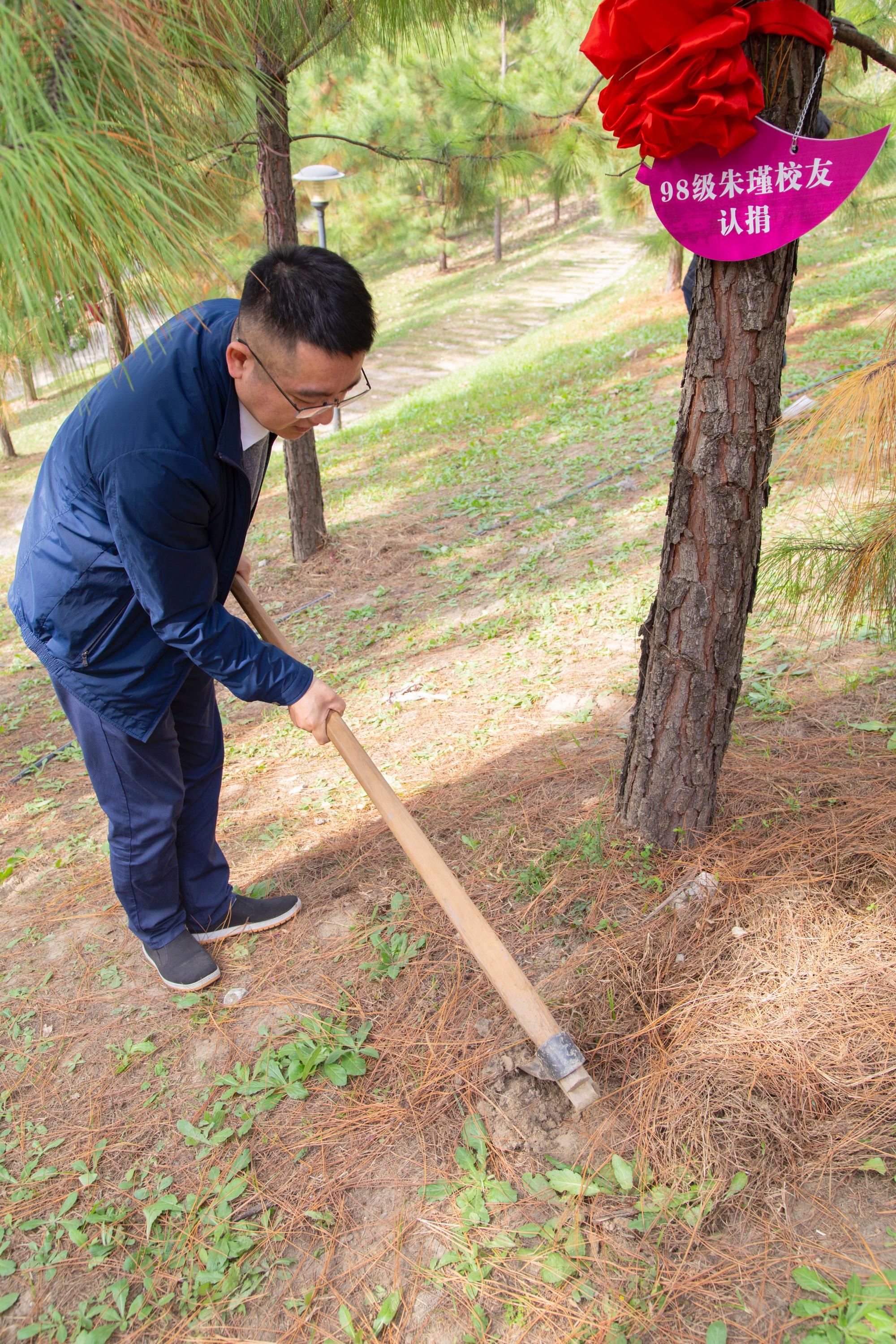 10:15,校友林认捐仪式在我校校友林隆重举行,朱瑾校友,王亮校友,金晓群校友以及06级社工班全体校友认捐四棵松树。一颗松树,凝聚着校友们对母校的深沉眷恋与无限追思,更是饱含对母校更上层楼的殷切祝愿。