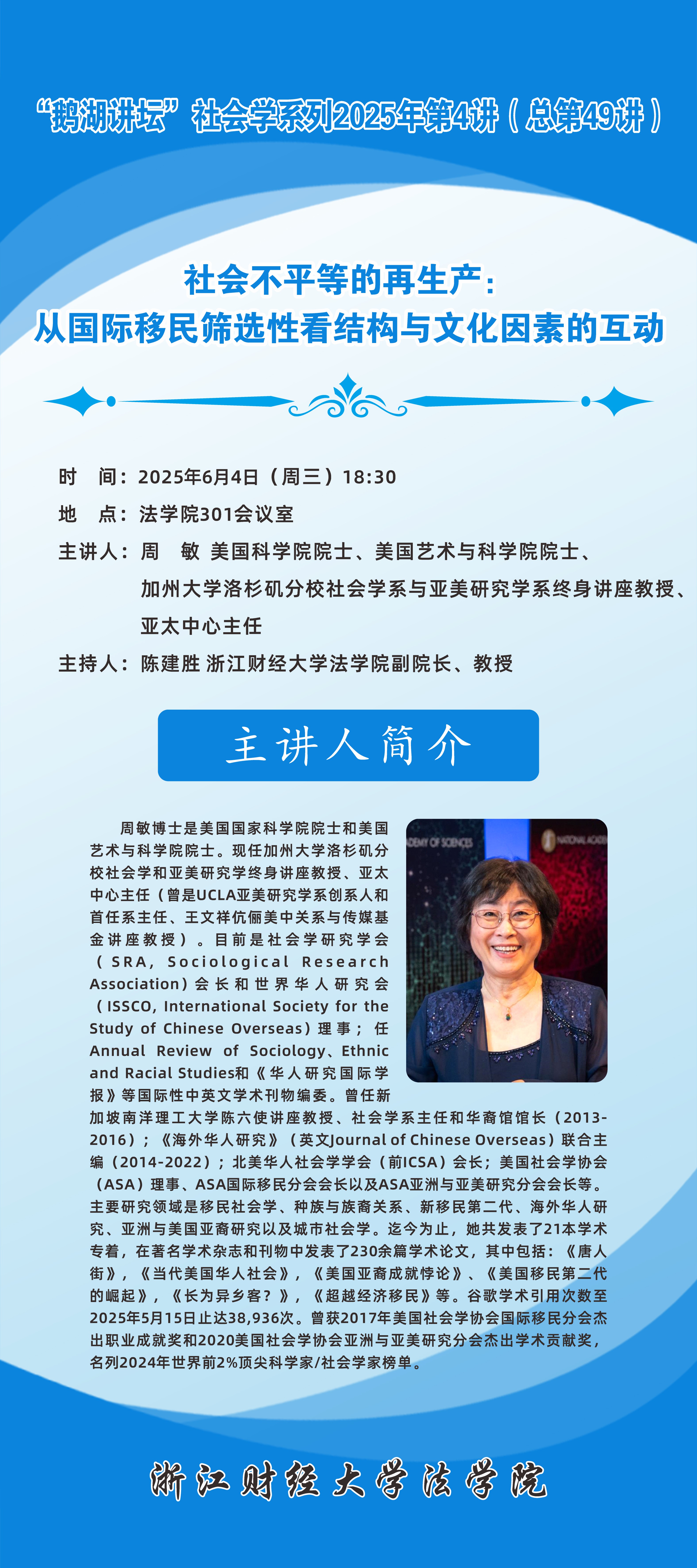“鹅湖讲坛”社会学系列2025年第4讲(总第49讲)美国科学院周敏院士
