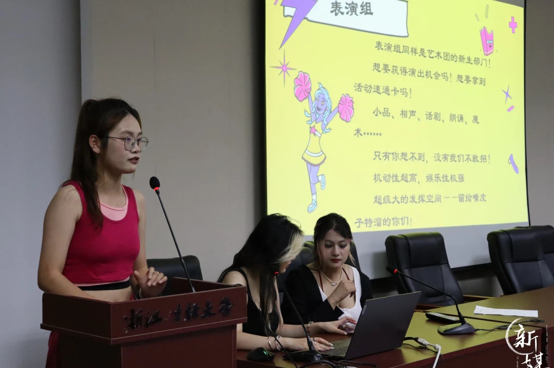 2023年9月6日,法学院艺术团在学院楼101教室开展艺术表演技巧和兴趣培训讲座,2023级新生全体参加。本次培训讲座由团委书记王龙辉老师主持。艺术团今年在原有的基础上新增了表演组,为更好的服务学生,提升同学们的表演兴趣和表演技巧,艺术团负责人张天慧向大家讲解了表演的一些基本技巧,比如在演员表演训练的过程中,我们通常会运用各种类型的即兴表演、动物模拟、人物模拟、观察生活细节和小品表演联系等方式进行各种技巧方...